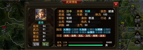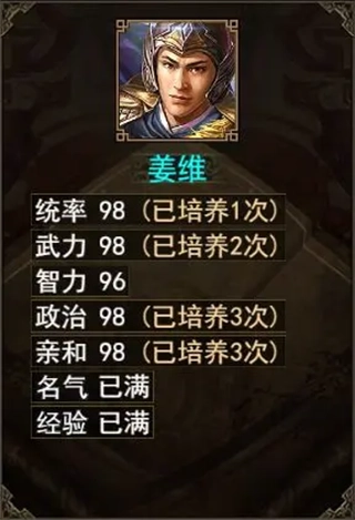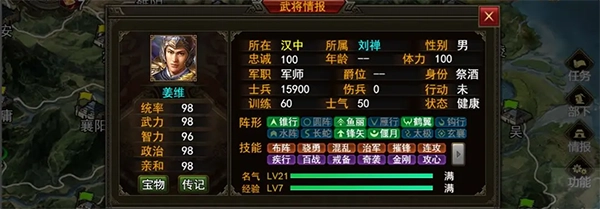 偃月阵:自带骁勇技能的姜维,在得到“叱咤”技能之后,完全可以作为蜀汉后期单挑主力。
