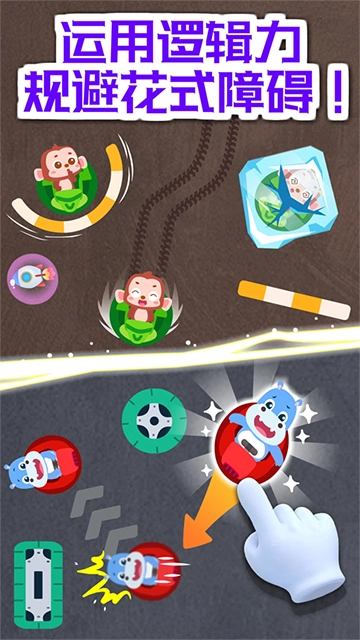 冰块把小伙伴困住了,宝宝快开动碰碰车,撞碎冰块,营救伙伴!赛场上的轮胎和风扇,会阻碍碰碰车的行驶,宝宝要规划好路线,巧妙躲避障碍。