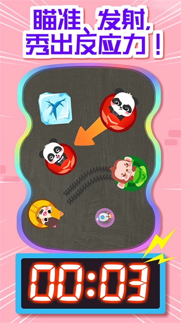 惊险的限时赛开场啦!宝宝赶快抓紧时间,寻找、撞击并消除相同颜色的碰碰车。5、4、3、2、1,倒计时开始了,宝宝快争分夺秒,瞄准、发射!