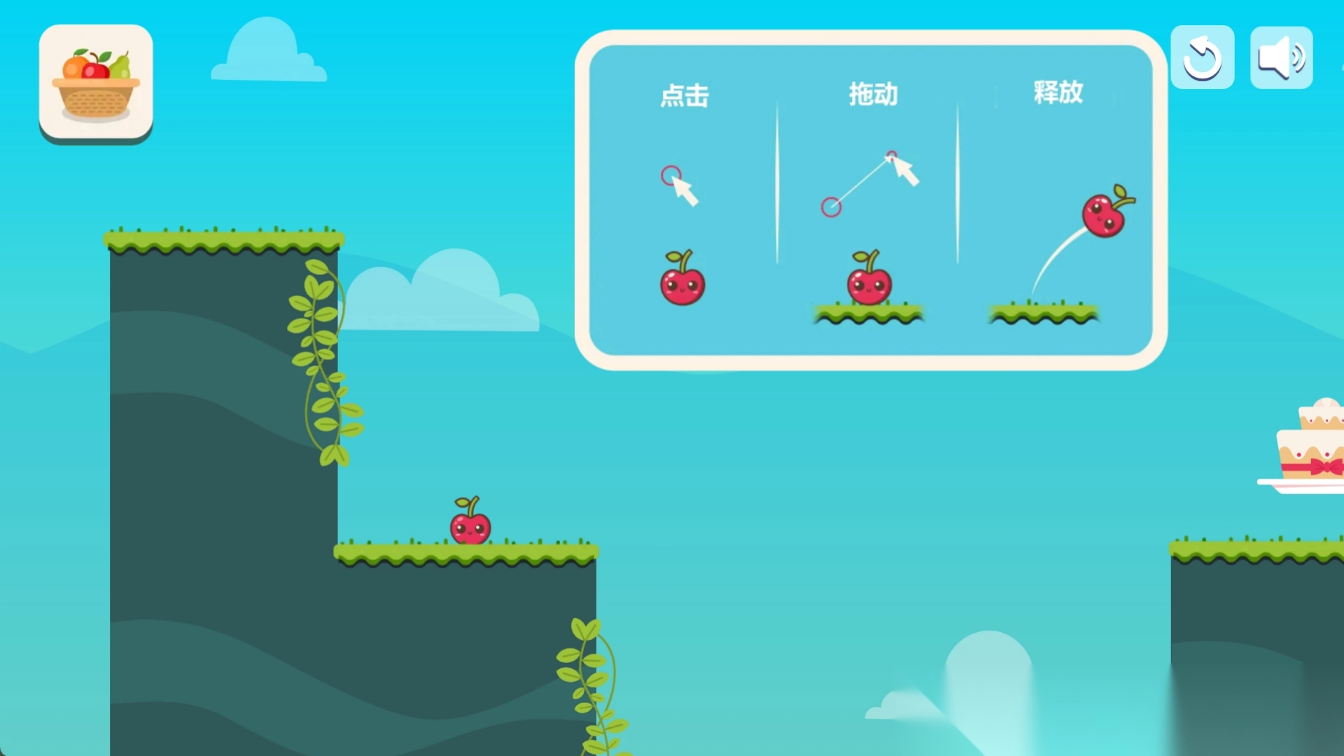3、通过不断躲避障碍将食材成功运送到蛋糕的顶部,到达顶部后根据自己的创意,将食材放置在蛋糕上。