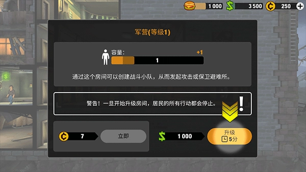 2、由于每个房间的功能属性不一,因此在搭配上将衍生出多种玩法,待建造房间之后,若想让该房间发挥出最大作用,玩家可通过升级强化的方式来提取每个房间应产出的资源,如图。
