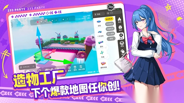 233派对,这是一款洋溢着创意与社交趣味的3D高自由度派对游戏。在这个奇妙的游戏世界里,你能够随心所欲地定制极具个性化的虚拟形象,凭借自身的想法与风格展现独一无二的魅力。游戏配备了功能强大的地图编辑器,这使得每一位玩家都有机会摇身一变成为创作者,你能够亲自设计专属于自己的派对世界,而后邀请好友一同加入这场冒险之旅。要是你渴望体验与众不同的地图乐趣,那也极为简单,随时都能投身于其他玩家精心设计的创意场景之中,去感受解谜时烧脑的挑战、射击带来的热血激情、跑酷所具备的刺激节奏,每一种玩法都宛如惊喜盲盒,充满了未知与欢乐。