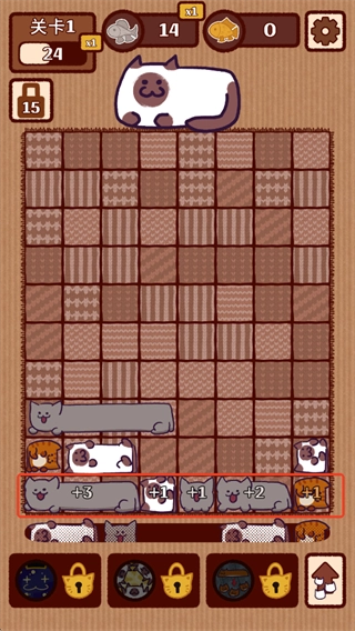 猫咪滑块是一款围绕猫咪主题展开的消除游戏。它玩法易懂,却颇具策略性。玩家要像玩俄罗斯方块那样,把棋盘上形状各异的猫咪,放置到同一行以实现消除。其中,一些特殊猫咪还能触发独特特效,助力玩家更高效地消除。这款游戏不存在时间限制,每次仅能挪动一只猫咪。玩家得依据当前已有的猫咪以及即将出现的猫咪来规划布局,从而让思维变得更为敏锐!