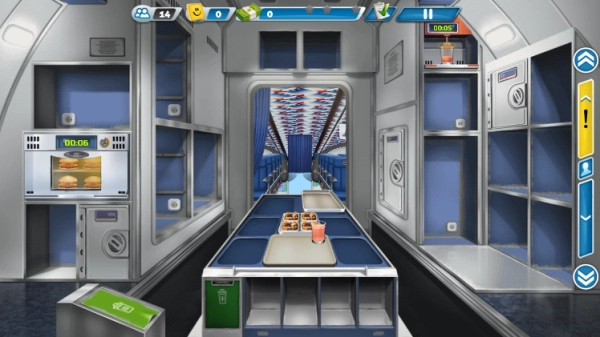 5、点击右侧箭头可前往机舱或是回到飞机厨房,在机舱中将顾客所需食物给到顾客;