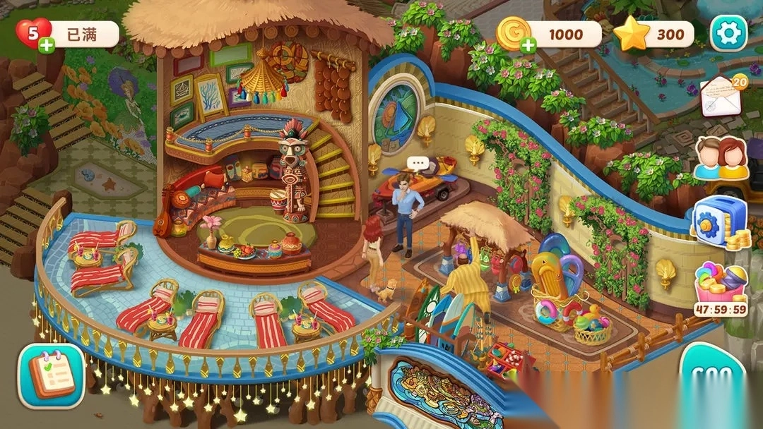 当你进入游戏后,点击位于左下角的“任务”图标。就像下图展示的那样,要翻新小路,我们需要一颗星星。