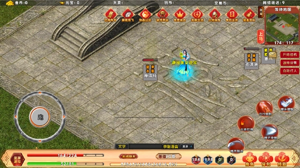 2、右下角的四个魔瓶分别用于回血、回蓝、随机传送和返回城镇。