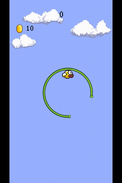 3、按屏幕控制小鸟上下飞,避绿色障碍,多吃金币提高右上角得分。