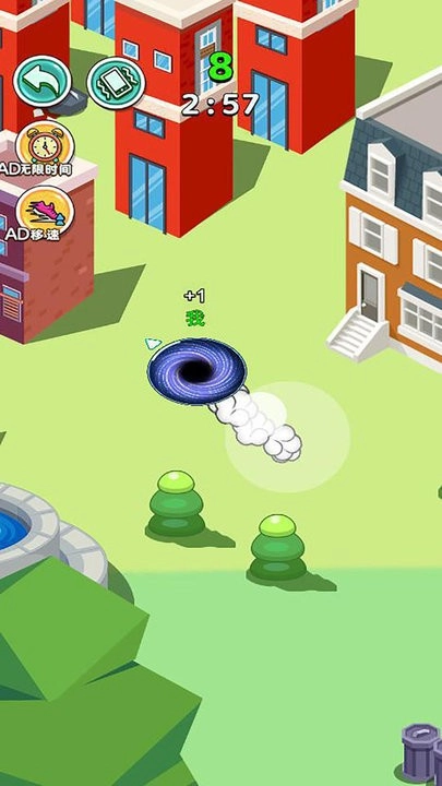 3、通过手指滑动控制黑洞移动,不断吞噬场景中的物品壮大自己,同时要避开其他黑洞的吞噬范围。