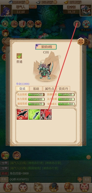 2、查看宠物(绘纹)界面,关注资质、技能栏,通过培养(资质丹等)提升属性,搭配技能,增强战斗能力。