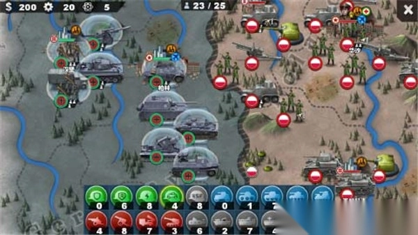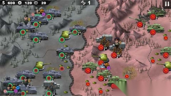 2、丰富战斗单位:涵盖坦克、火炮等多种单位,可组建强大军团展现铁血军事力量。