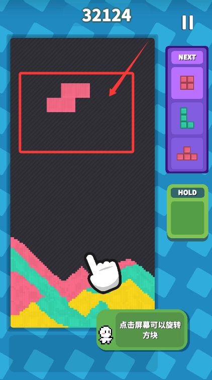 1. 只需轻轻触碰屏幕的任意地方,就能对方块的朝向进行调整。唯有灵活转动,方可寻得最佳的下落角度。