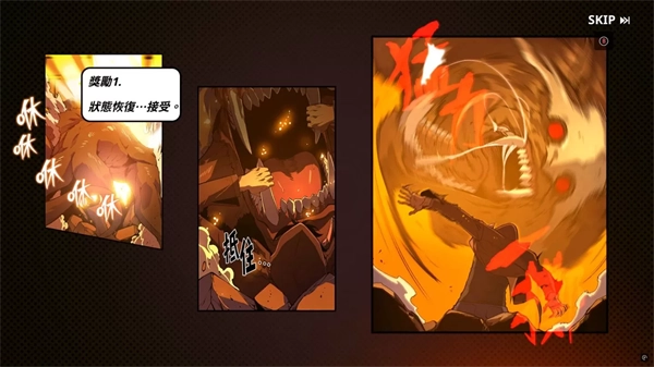 章节任务几乎限定玩家全手动进行,不具有自动战斗机能,有趣的是,一般动作游戏中主角通常都只有一命的挑战机会,但是《我独自升级:arise》的战斗,还原了原作成振宇利用系统的「任务」机制奖励,获得完全回复的的情节,并融入游戏奖励中。