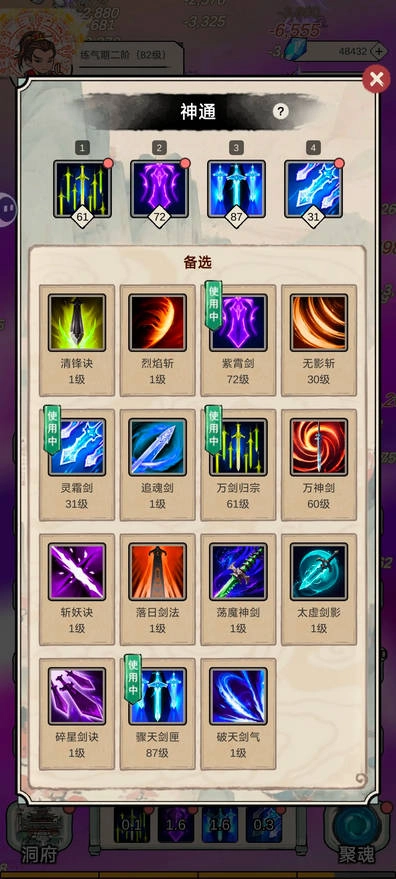 无限流修炼模拟器的核心玩法强调策略与个性化配置,角色最多可同时装备四种神通,并设置四种备用神通,方便玩家灵活应对各种敌人和局势。在修炼的旅途中,你将收集无数宝物与机遇,解锁更强大的技能和装备,以实力突破自我。