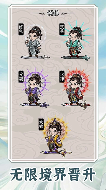 无限流修炼模拟器,是一款别具一格的2D卡通风格角色扮演游戏,巧妙融入修仙元素。在游戏里,玩家可从多种修炼流派中随心挑选。随着完成任务与迎接战斗挑战,角色能力将持续增强,所邂逅的神器与绝学也会同步升级,从而为玩家开拓出更多的战斗可能性。