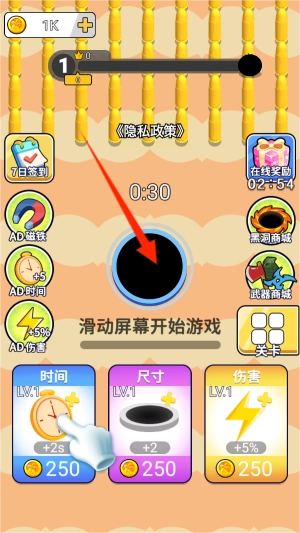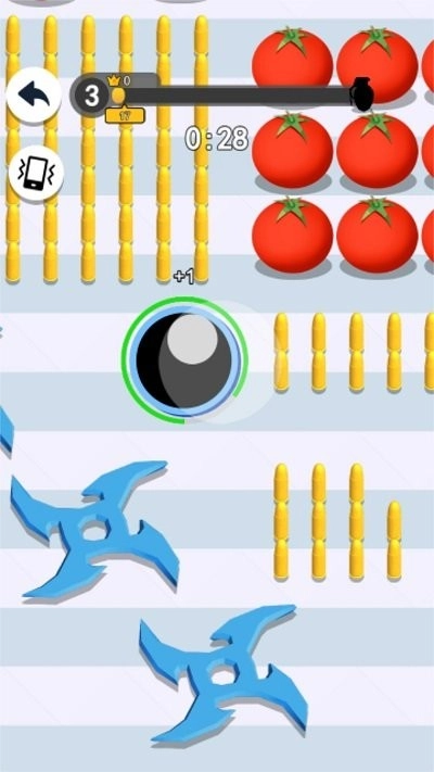 2、控制画面中央的引力漩涡,精准吸收四周飞射而来的各种弹药道具。
