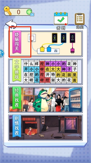 2、在模式选择页面,找到"烧脑闯关"玩法,体验独特的机关解谜乐趣。