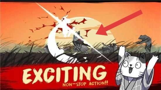 3、体验“EXCITING-NON-STOP-ACTION!!”战斗,跟随箭头,操控武士猫释放技能(如剑气),击败敌人,推进关卡。