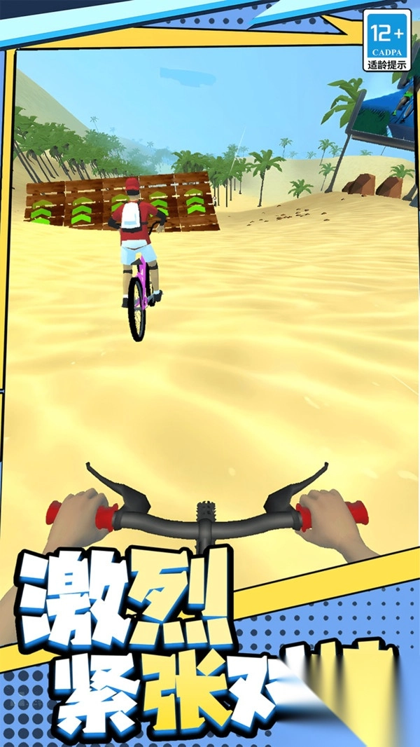 1. 挑选赛道与车手,切换至第一视角开启骑行。通过滑动屏幕掌控方向,巧妙躲避障碍、超越对手,全力冲向终点。