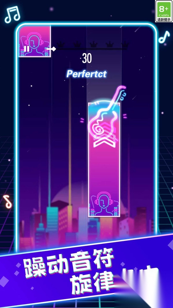 3、音符坠落搭配炫光特效,随节奏变换场景与色彩,打造沉浸式视听盛宴。