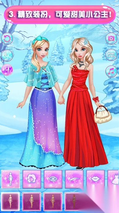 2、自由装扮王国,除了角色换装,还能装饰你的冰雪城堡,打造独一无二的梦幻领地;
