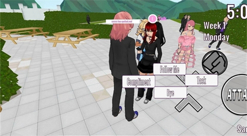 当学校内发生命案或有学生失踪,氛围将开始下降,氛围的百分比越低学校变得越灰暗,下降到一定程度学生和老师(除了体育老师)将会开始发抖,并不断向左右看,害怕自己被杀。所以当氛围下降,病娇酱的行动也将更容易被发现,声誉也下降得更快,谋杀会变得难以进行。