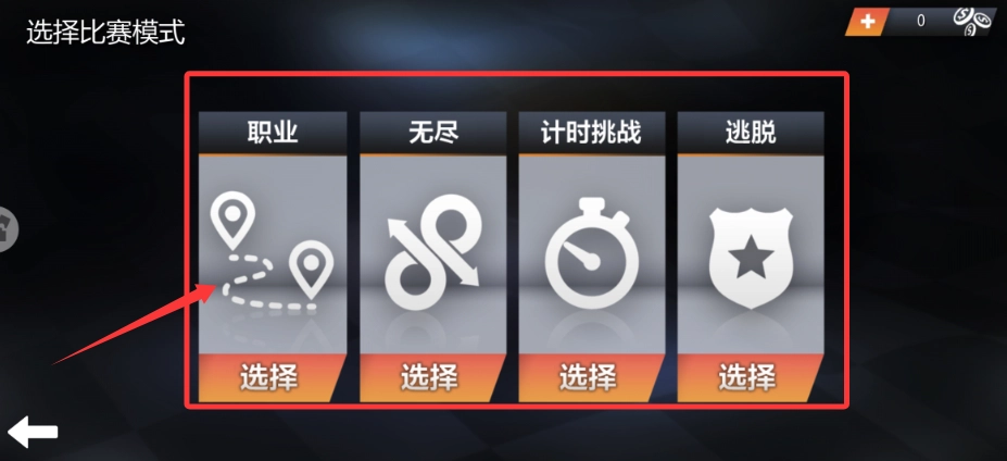 1. 打开游戏,于车库里选好赛车,接着点击“开始”,就能进入模式选择界面。