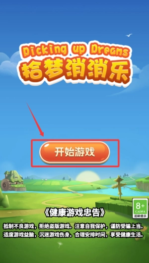 1. 轻点橙色的“开始游戏”按钮,阅读健康提示信息。