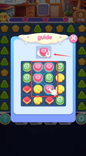 3、点击红线框内相同图案方块,完成消除任务。
