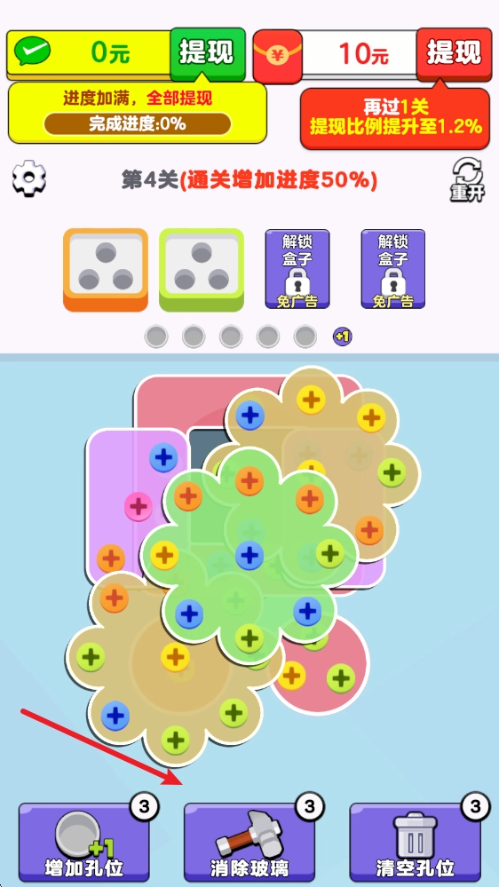 2、成功在螺丝盒中装满三个螺丝即可消除,并随机出现其他的螺丝盒。
