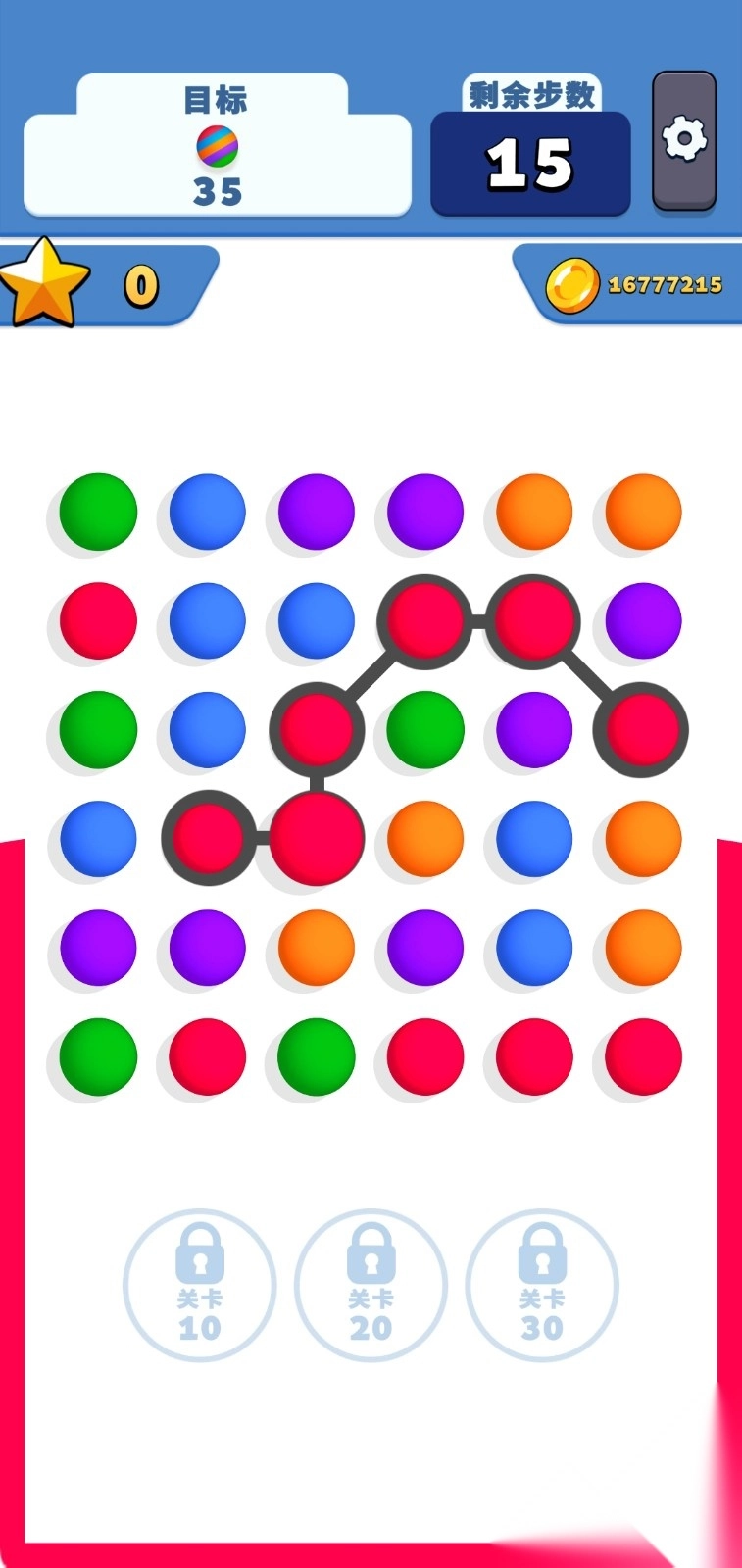 2.部分关卡会限制连线次数或时间,玩家需在有限条件下完成目标。例如,必须在10步内消除20个红色球球。