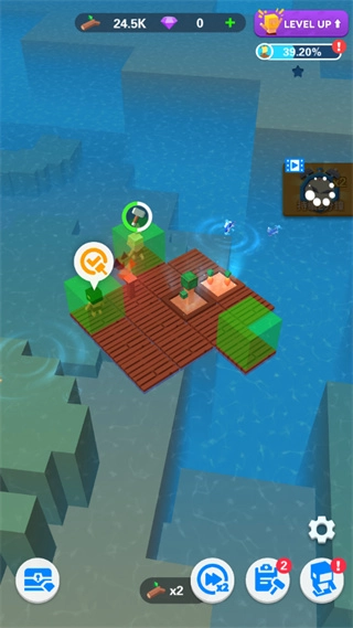 2、自动建造体系:通过收集「螺栓」「木材」等基础材料,可自动升级木筏至双层甲板结构,夜间自动建造模式下可消耗双倍资源加速施工。