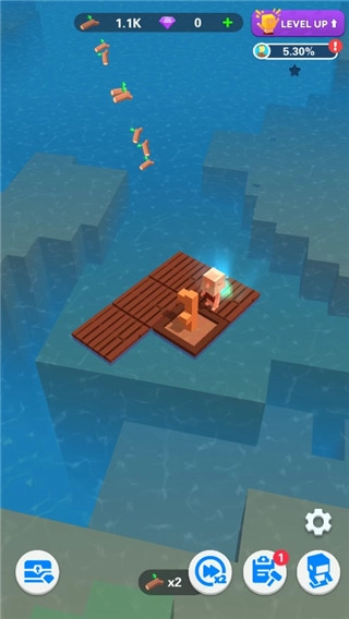 2、通过游泳收集木材、漂流瓶、宝箱等神秘建筑材料。