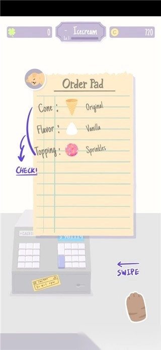 5. 选择猫猫,按照它给出的订单为其制作不同口味的冰淇淋;