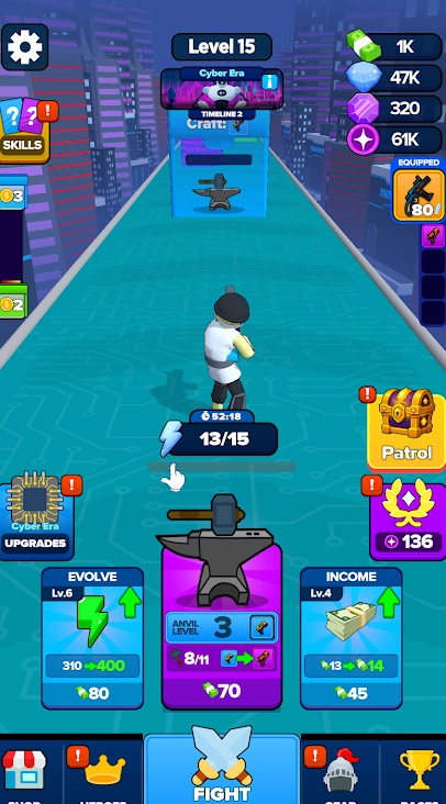 1、通过跑酷操作躲避障碍物、击败敌人,收集沿途资源。 2、利用获得的资源研发新技术、建造防御设施。 3、根据当前时代的特性制定战术,合理分配队伍成员。