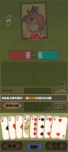 3、利用扑克牌的方式与对手进行战斗,合理搭配不同扑克牌以尝试提高攻击力完成对抗;