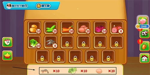 3、玩家需要尝试选择相应的食材进行制作,如果材料不够需要进行自行种植;