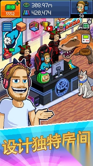 主播模拟器中文版,是一款竖版像素艺术风格的经营养成游戏。在进入主播模拟器中文版手机版后,玩家会面对一个空荡荡的房间,以此为起点开启游戏,需要着手拍摄视频。玩家通过持续提升自身技能与能力来赚取资金,进而购买家具和装饰物,逐步把这个简陋的空间打造成极具个性与魅力的明星主播之家。