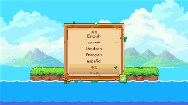 1当玩家踏入《路纳的钓鱼花园》中文版,便可以从多种语言里挑选自己心仪的语言进行游戏,而这里所选的语言为中文。