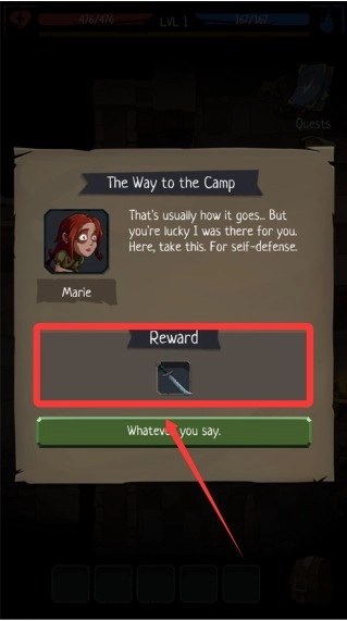3、找到npc和npc进行对话,得到道具,打开背包,将武器拖到武器栏就可以使用了。