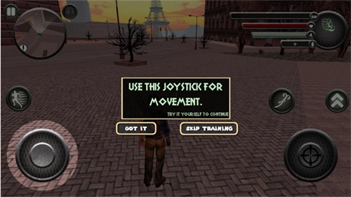 1、进入游戏后,玩家将以第三人称视角操作主角在城市场景中进行移动,尝试与不同敌人进行战斗;
