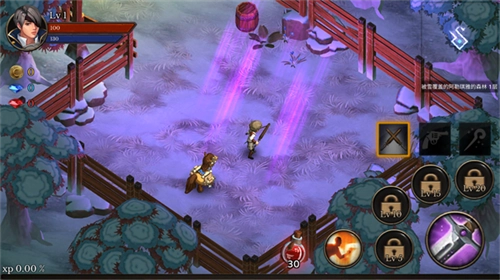 3、游戏利用虚拟摇杆的方式操作角色进行移动,点击画面右侧的攻击以及技能按键进行战斗;