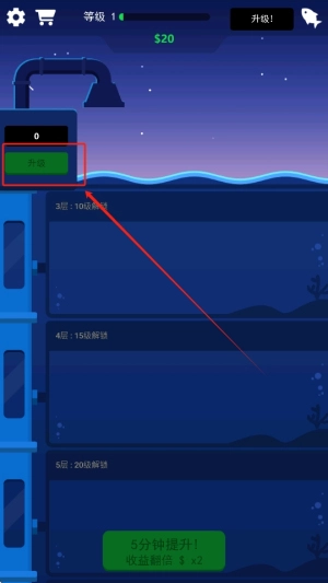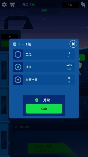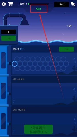 3、升级鱼和工厂系统,提升赚钱能力,使得游戏的进程更加流畅,吸引玩家不断进行投资与管理。