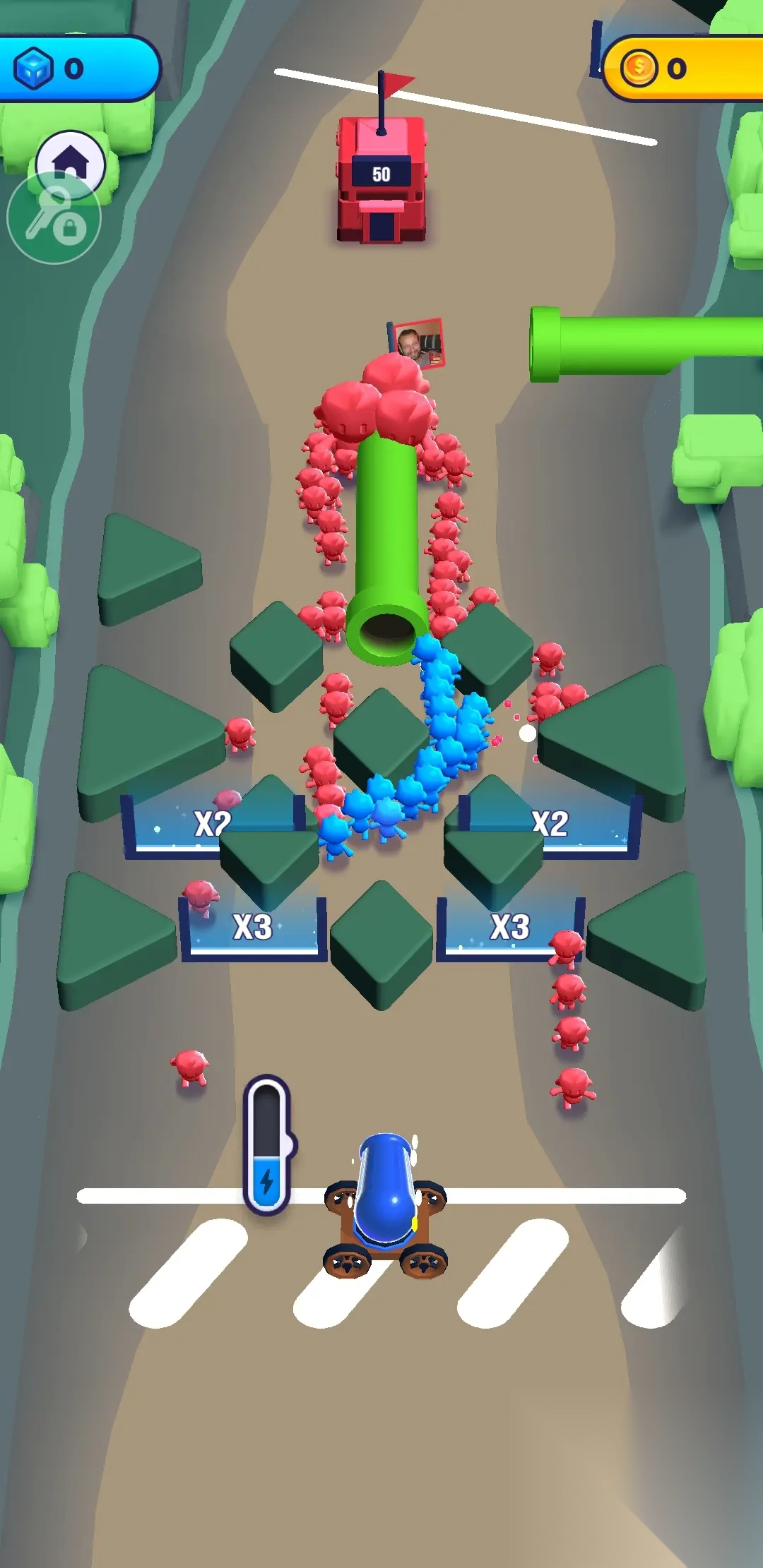 《炮弹人冲冲冲》是一款节奏明快且策略性十足的休闲益智塔防游戏。其玩法巧妙融合即时战斗与路径规划要素,为玩家打造出别具一格的游戏体验。该游戏采用清新简约的卡通风格,整体界面舒适直观,带来轻松愉悦的视觉感受。 在每场战斗里,玩家通过滑动操作释放炮弹人,依据战场形势挑选合适的增益路径,促使队伍规模快速壮大。随着游戏进程推进,玩家还得应对敌人的拦截以及防御设施等诸多阻碍,这就需要精准把握每个关卡的节奏,在规定时间内突破防线,成功占领对方据点。