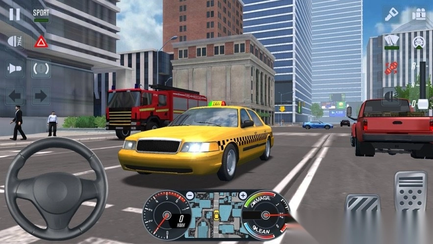 1. 在驾驶过程中,通过虚拟方向盘和踏板来操控车辆,于城市道路行驶时要避开其他车辆(例如出租车)。