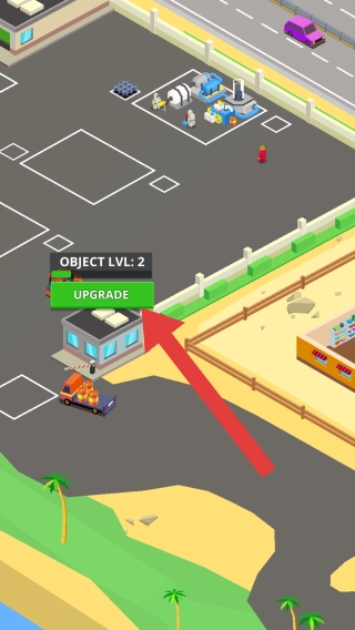 1. 此处呈现的区域为油田,其中设有“OBJECTLVL:1”(即目标等级1 )标识以及“UPGRADE”按钮。玩家能够通过点击该按钮,对油田设施开展升级操作。这一玩法环节隶属于开采与经营石油产业的范畴,旨在提升设备等级。