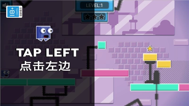 1、玩家在每一关中控制形象都是自己选择的,升级可以将方块变为新的状态。