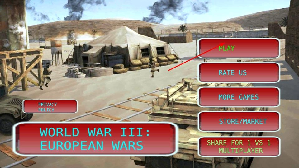 1. 当进入主界面后,点击【PLAY】按钮,接着从同盟国与轴心国阵营中做出选择,并设定难度,随后通过滑动屏幕,即可进入战争沙盘场景。