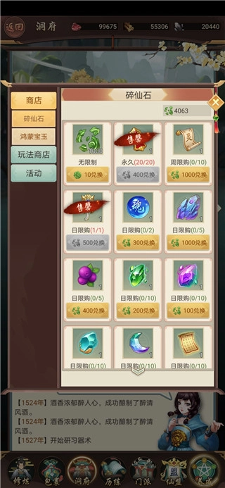 接着去逛街看看万宝阁有没有自己需要的道具,推荐每日声望值拉满,因为声望值后期刷门派或者开门派技能上限非常有用,声望不够刷不到自己想要的门派活活拖进度非常难受。