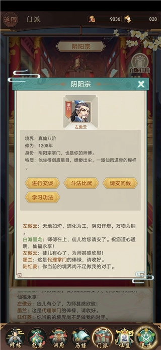 有两件事可以加快你的训练!其中一项是门派秘籍,在众多修真门派中,有一部分隐藏着可以提升修炼速度的特殊秘籍,如飞星门、紫云门等,而大多数萌新都不知道拜了一个门派就会吃尽苦头。基础传功和门派修行众所周知,但有很多朋友甚至不知道打败掌门就可以取代他成为代老大,在练功房中获得了两倍的禅定时间,一天多了2.5小时,每天持续开启差距很大!
