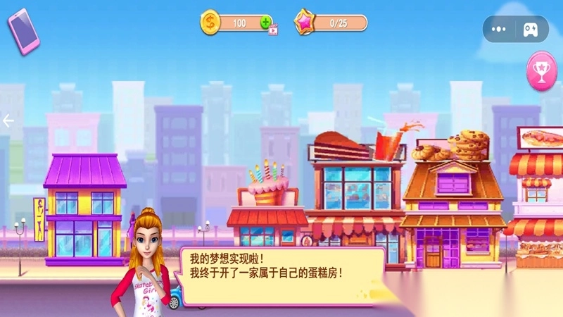 3、去街道场景,互动接订单,依据需求制作特定蛋糕,交付获报酬升级店铺。